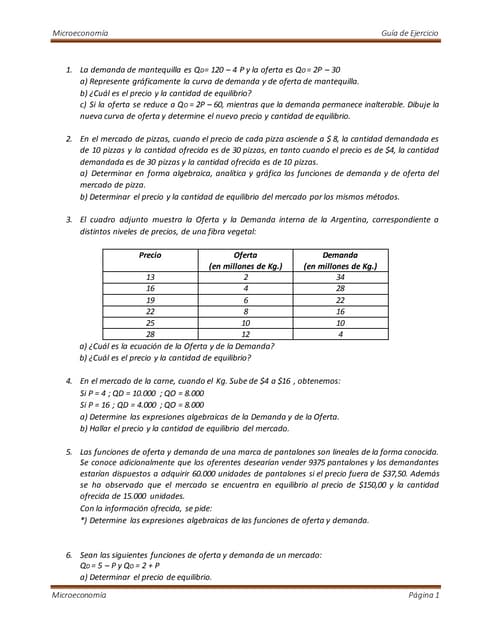 Ejercicios De Oferta Y Demanda